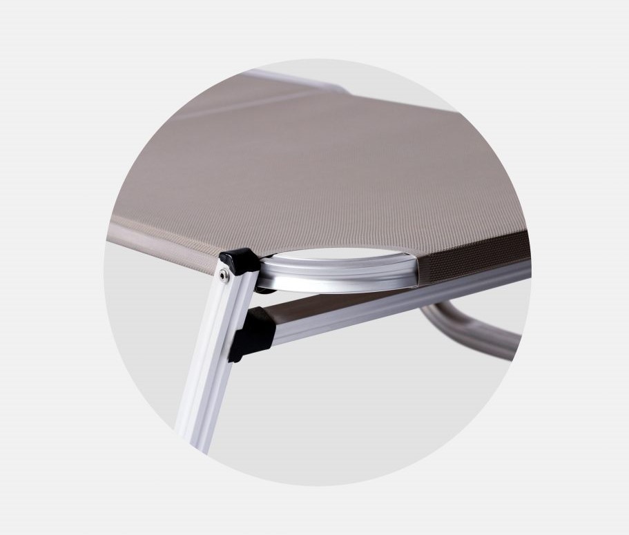 An ergonomic aluminum sunbed..